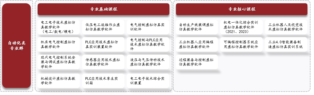 通過專業(yè)基礎(chǔ)課、專業(yè)核心課、專業(yè)拓展課的延伸拓展,提供圍繞自動控制相關(guān)基礎(chǔ)理論、核心能力及擴展應用的課程內(nèi)容,通過軟件及資源、硬件設(shè)備和工程實訓的體系,為教學提供全方位支撐。